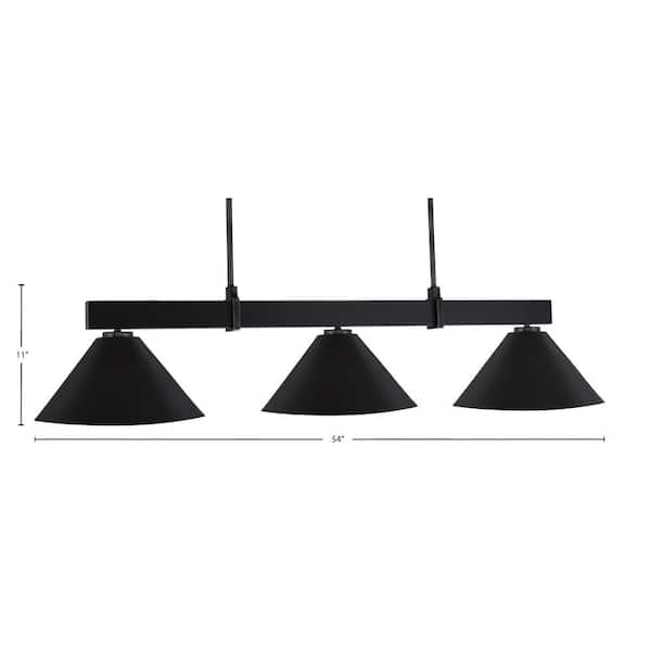 Balmore 3-Light Matte Black Billiard Light with 14 in. Matte Black Metal Shades
