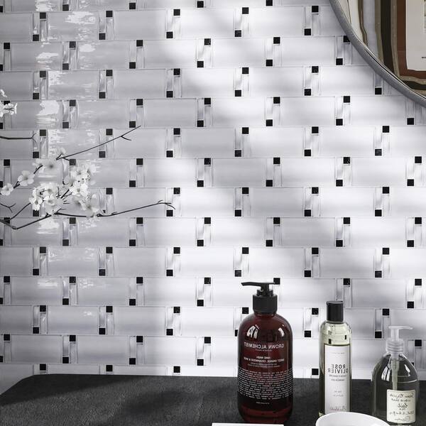 Bambo White 9.85 in. x 11.42 Brick Joint Glossy Glass Mosaic Tile Sample