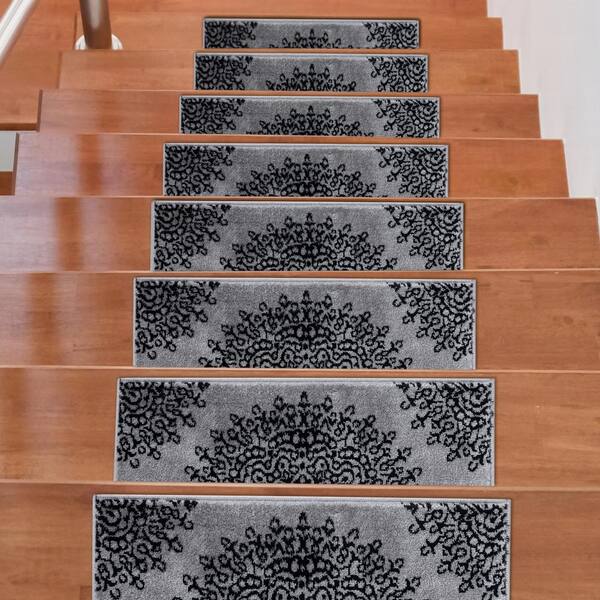 Barcelona Dark Gray 9 in. x 28 in. Non-Slip Stair Tread Cover (Set of 13)