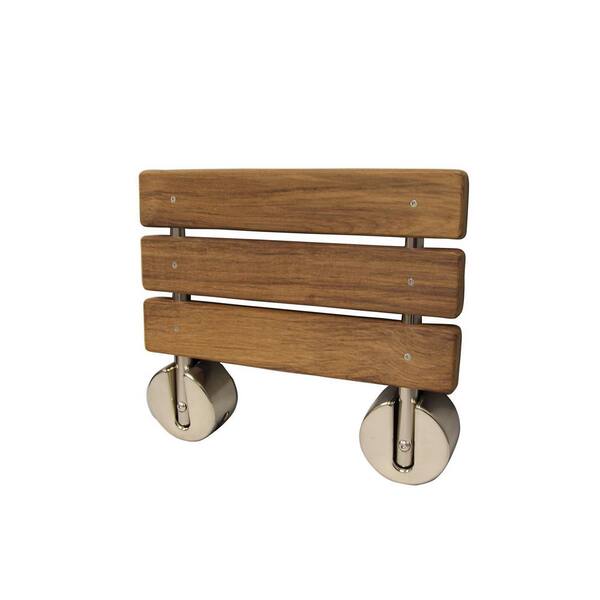 16 in. Teak Wall-Mounted Shower Seat with Round Brackets in Brushed Nickel
