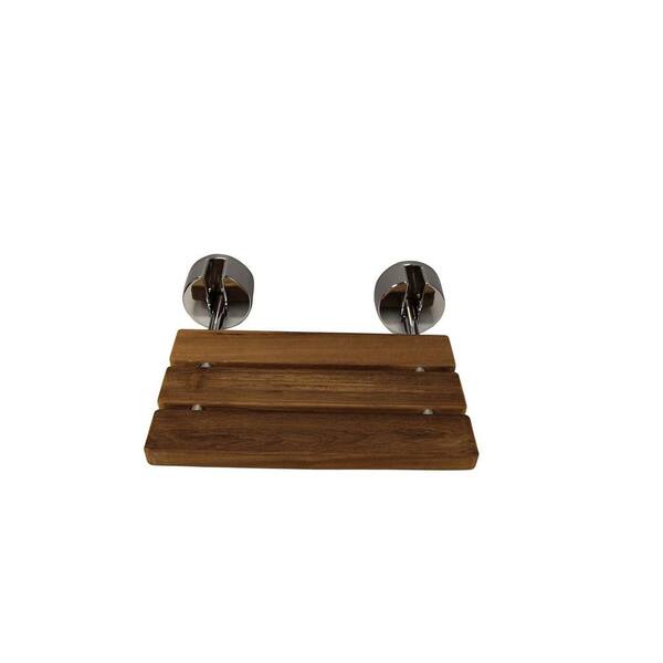 16 in. Teak Wall-Mounted Shower Seat with Round Brackets in Polished Chrome