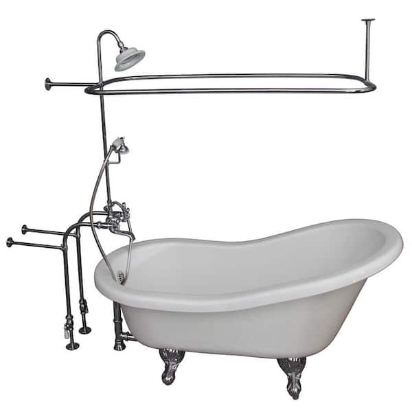 5 ft. Acrylic Ball and Claw Feet Slipper Tub in White with Polished Chrome Accessories
