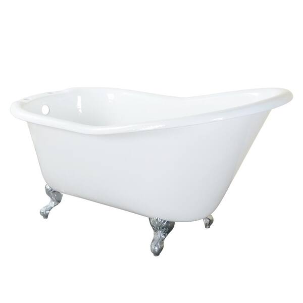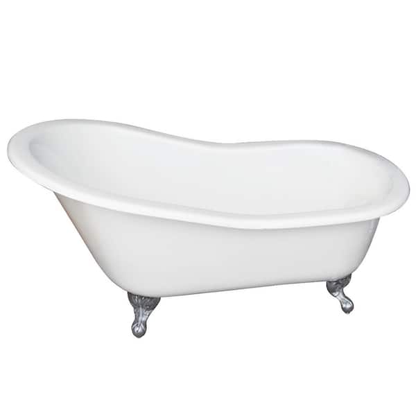 Icarus 67 in. Cast Iron Slipper Clawfoot Non-Whirlpool Bathtub in White with No Faucet Holes and Polished Chrome Feet