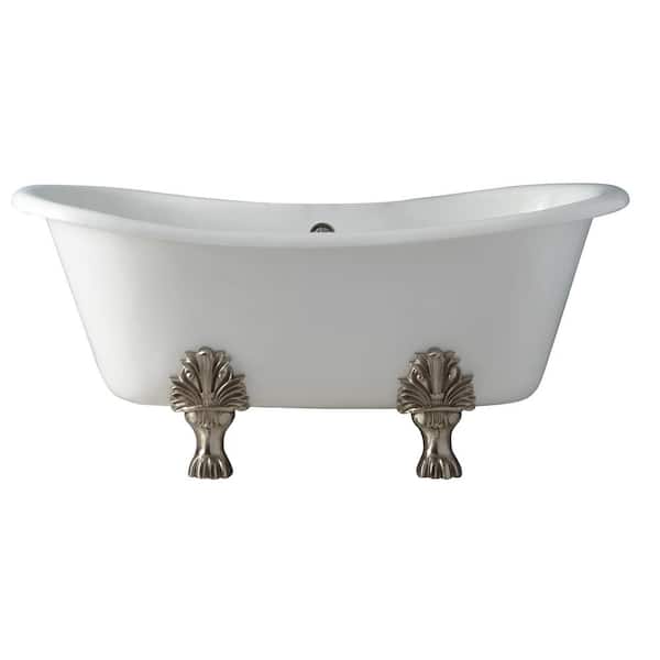Markus 66 in. Cast Iron Double Slipper Clawfoot Non-Whirlpool Bathtub in White with 7 in. Faucet Holes and PB Feet