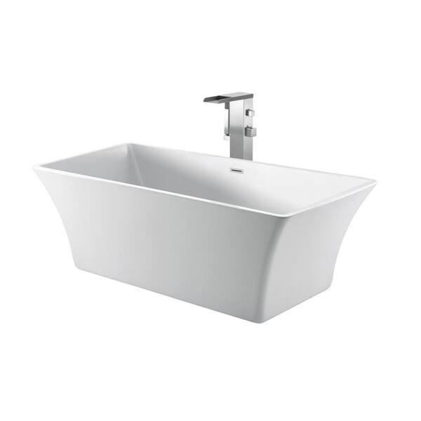 Tara 60 in. Acrylic Flatbottom Non-Whirlpool Bathtub in White with Integral Drain in Polished Brass
