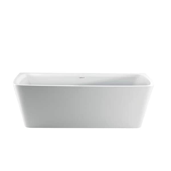 Vincent 71 in. Acrylic Flatbottom Non-Whirlpool Bathtub in White with Integral Drain in Polished Brass