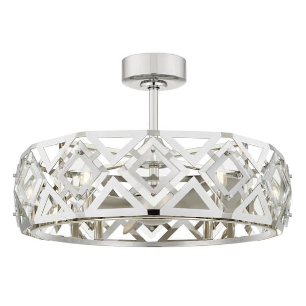 Bari 22"in. Blade Span 30"in, Width Indoor Chrome Flush Mount Fandelier Ceiling Fan with Remote Control