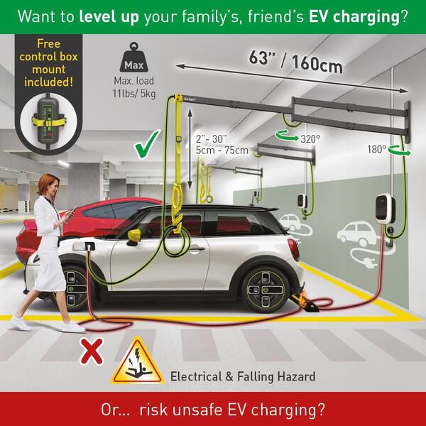 Barkan Weatherproof Elegant EV Charging Cable Wall Arm Protective Retractable 63 in. 5Y Warranty Level 1 Level 2 Charger