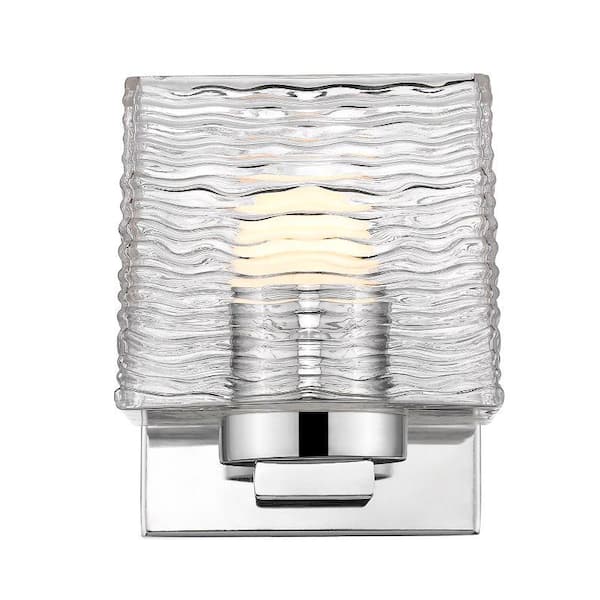Barrett 4.25 in. 1-Light Chrome Integrated LED Shaded Vanity Light with Clear Glass Shade