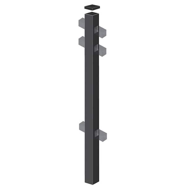 Cascade Heavy-Duty 2-1/2 in. x 2-1/2 in. x 5-7/8 ft. Black Aluminum Fence Line Post