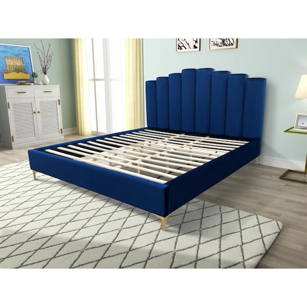 Barrington Blue Velvet King Platform Bed with Gold Legs