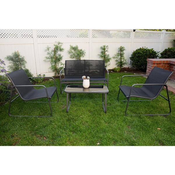 4-Piece Black Outdoor Textilene Patio Set Seating Conversation Sets with Glass Table Black