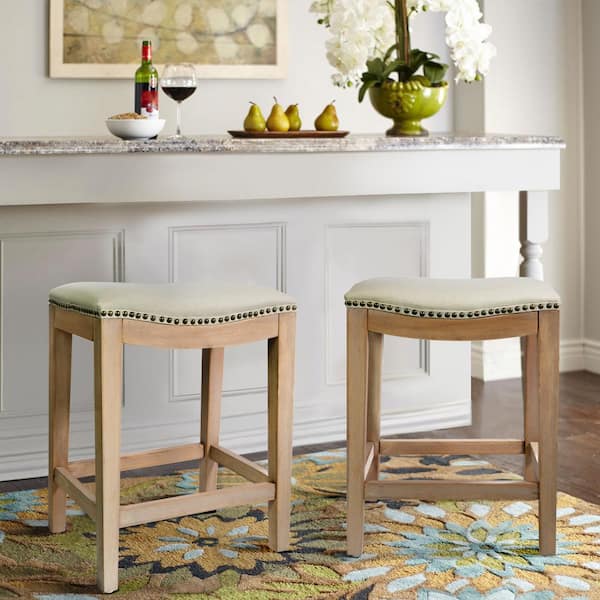 Classic Isabel 24 in. Beige Backless Counter Saddle Bar Stool (Set of 2)