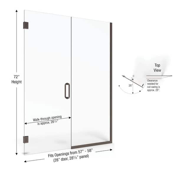• 57 in. to 58 in. wide shower opening