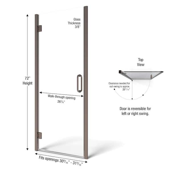 Coppia 31 in. x 72 in. Semi-Frameless Pivot Shower Door in Oil Rubbed Bronze with Handle