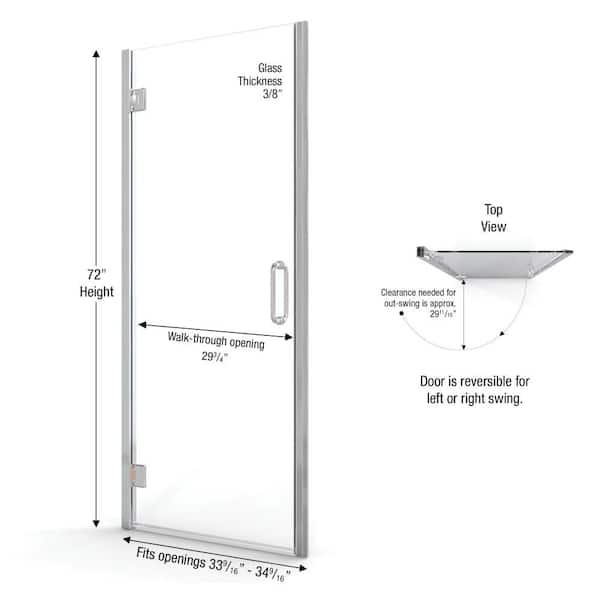 Coppia 34 in. x 72 in. Semi-Frameless Pivot Shower Door in Brushed Nickel with Handle