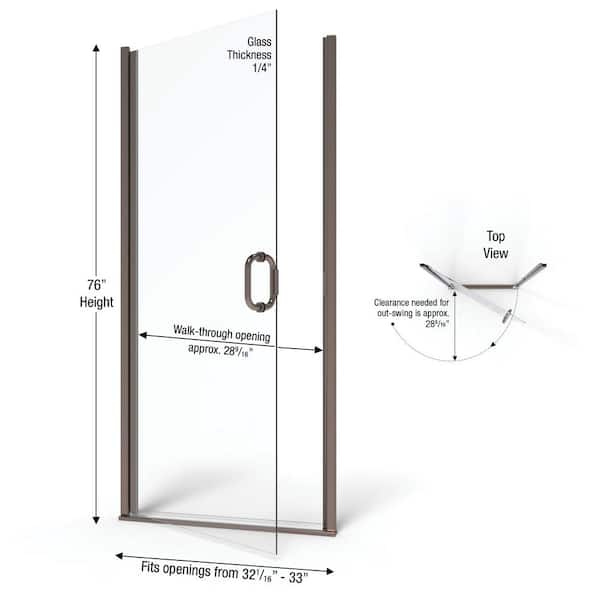 Infinity 33 in. x 76 in. Semi-Frameless Hinged Shower Door in Oil Rubbed Bronze with AquaGlideXP Clear Glass