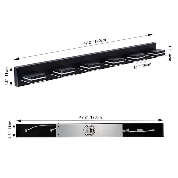 48 in. 6 Light Modern Black Finish Vanity Light Fixture Bathroom Over Mirror Wall Lights with Iron Acrylic Dimmable