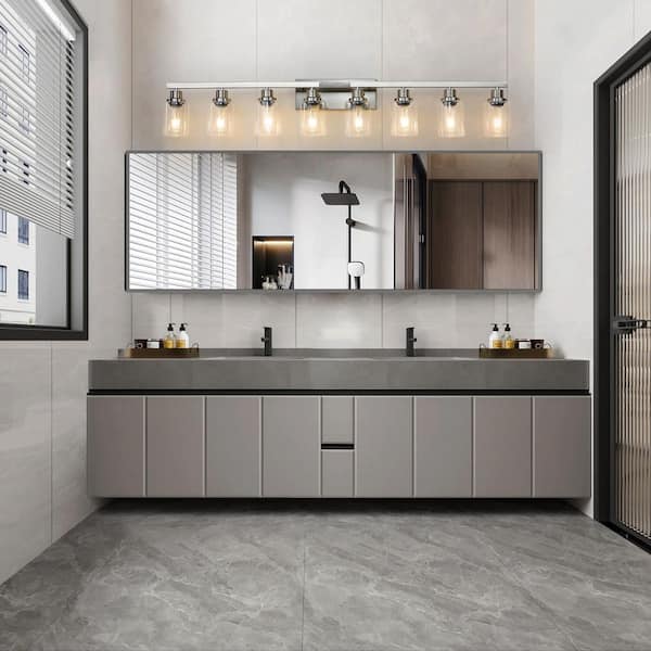 51 in. 8 Light Brushed Nickel Finish Vanity Light Fixture Bathroom Over Mirror Wall Lights with Clear Glass Shade