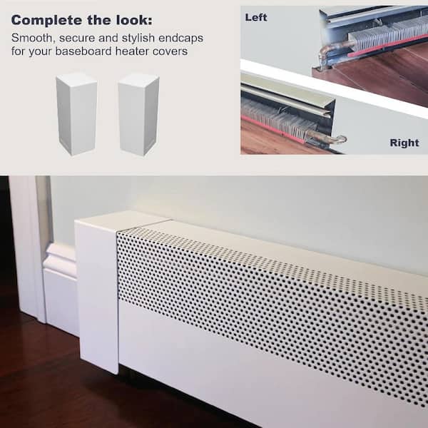 Basic Series Steel Easy Slip-On Baseboard Heater Cover Right Side End Cap in White