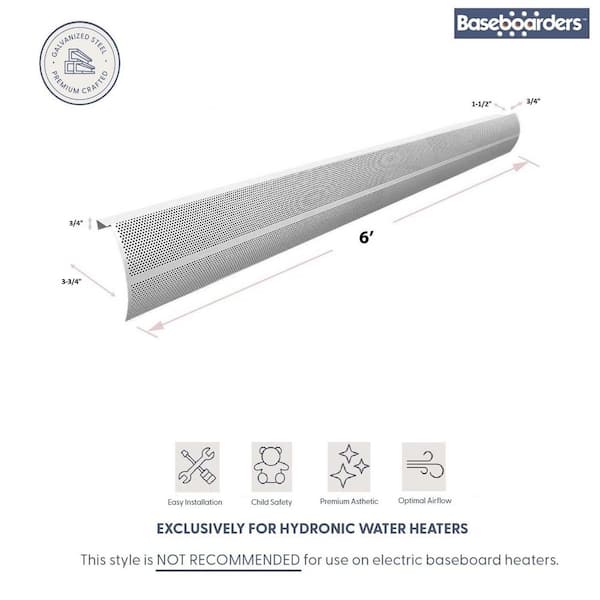 Elliptus Series 6 ft. Galvanized Steel Easy Slip-On Baseboard Heater Cover in White