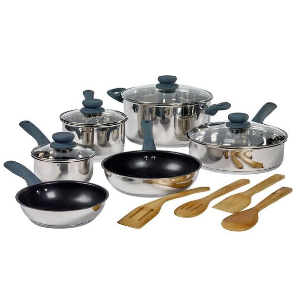 Basic Essentials 14-Piece Stainless Steel Nonstick Cookware Set