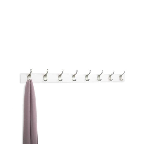 Basics Series White Modern Wall Mounted Rectangular Type Coat Rack with 8 Versatile Storage Hooks