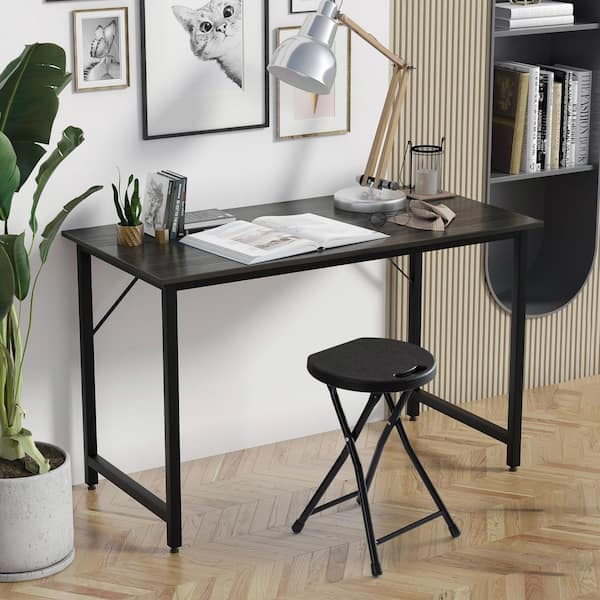 Adult Portable Folding Stool with Handle, Compact Chair with Non-Slip Feet, Plastic Seat, and Metal Frame Legs, Black