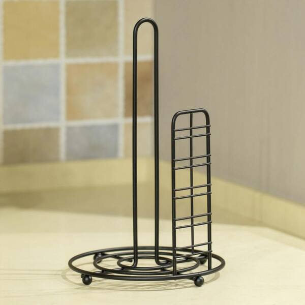 Round Single Roll Sturdy Black Towel Paper Holder Stand Roll Dispenser, Countertop Portable Stand, (Set of 2)