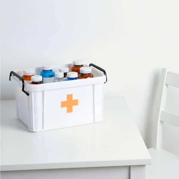 Small Medical Organizer and First Aid Kit Storage - Compact First Aid Box with Handle, Detachable Tray and Locking Lid