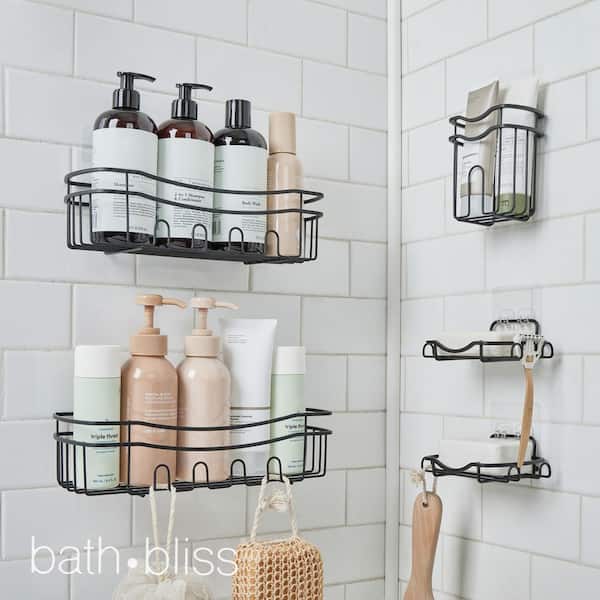 5 Piece Adhesive Shower Caddy Organizer in Matte Black