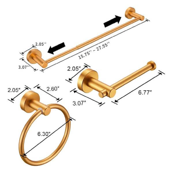 Bathroom Hardware Set, Thicken Space Aluminum 3 PCS Towel bar Set 16-27 Inches Adjustable Bathroom Accessories Set