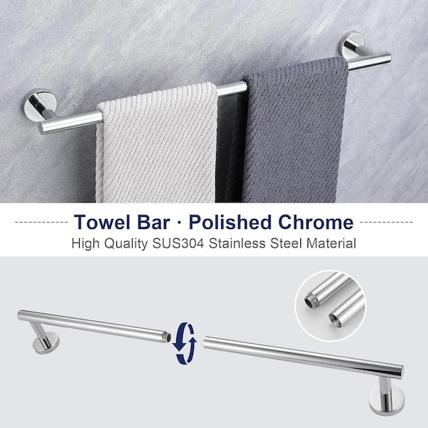 Bathroom Single Towel Holder, 21.3 in. Wall Mounted Adjustable Towel Bar Set in Polished Chrome