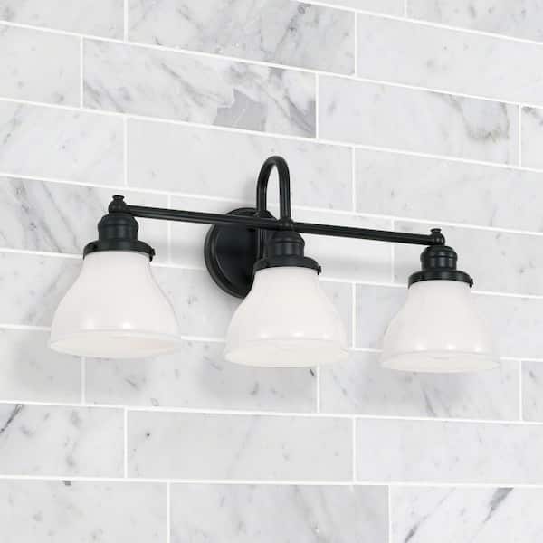 Baxter 24 in. W x 11 in. H x 8 in. E 3-Light Polished Nickel Vanity Light with Milk Glass