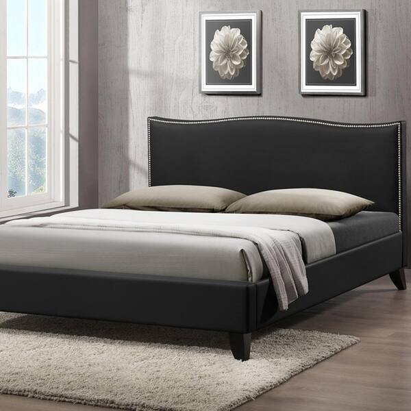 Battersby Transitional Black Faux Leather Upholstered Queen Size Bed