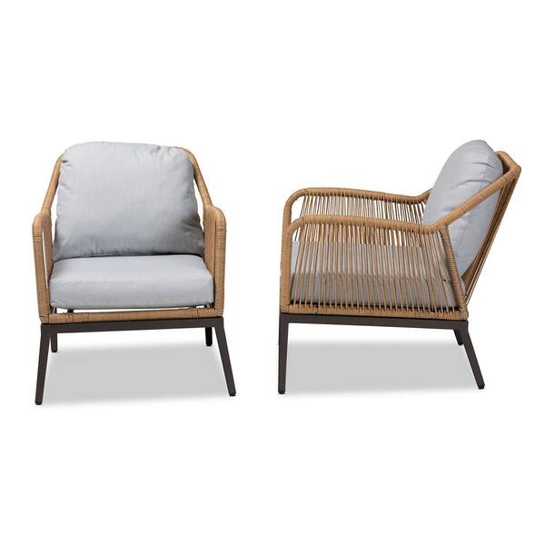 Endecott Wicker Outdoor Lounge Chair with Grey Cushions (Set of 2)