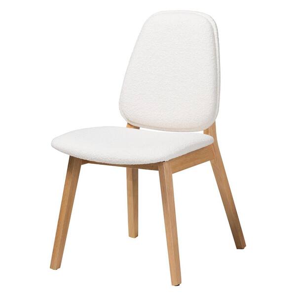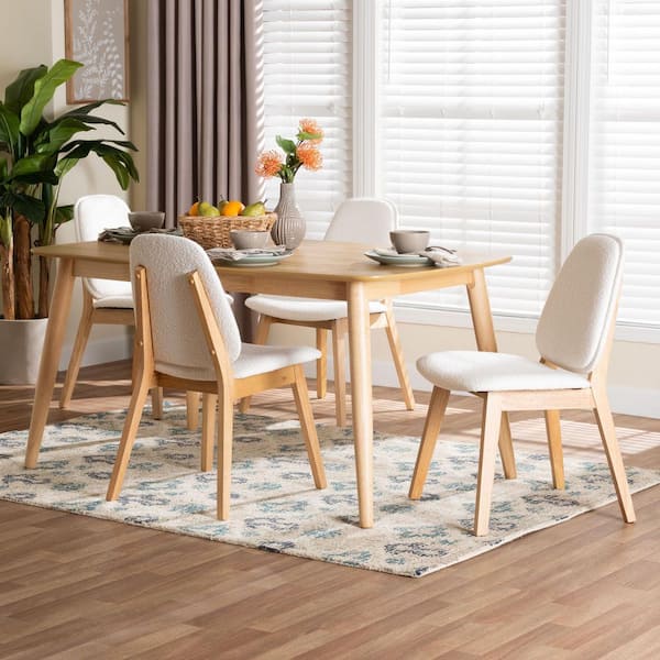 Jennica 5-Piece White Boucle and Natural Brown Wood Dining Set Seats-4