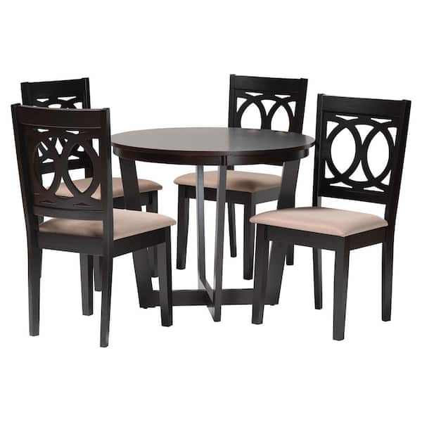 Kara 5-Piece Sand and Espresso Brown Wood Top Dining Set