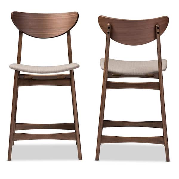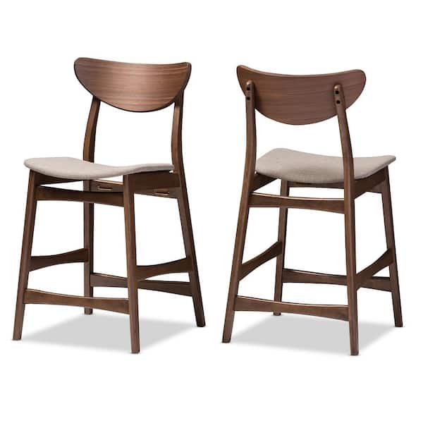 Latina Gray Fabric and Medium Brown Wood 2-Piece Counter Stool Set
