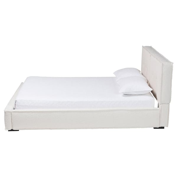 Laverick White Boucle and Wood Frame Queen Platform Bed