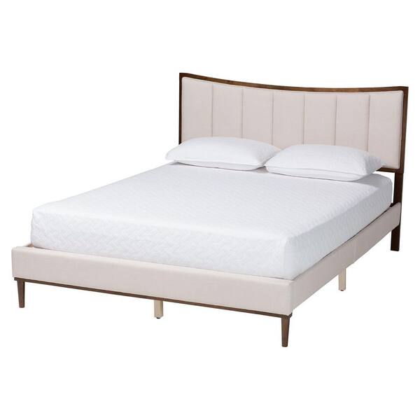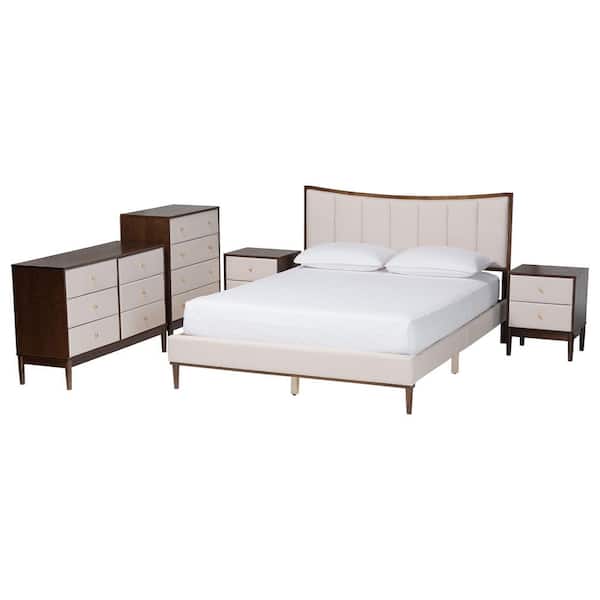 Nikolai 5-Piece Beige Fabric and Wenge Brown Wood Queen Bedroom Set