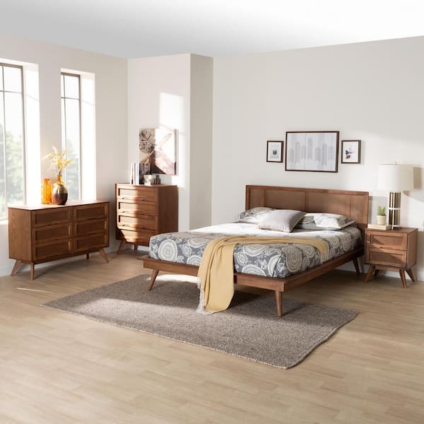 Nura 4-Piece Walnut Brown Wood King Bedroom Set