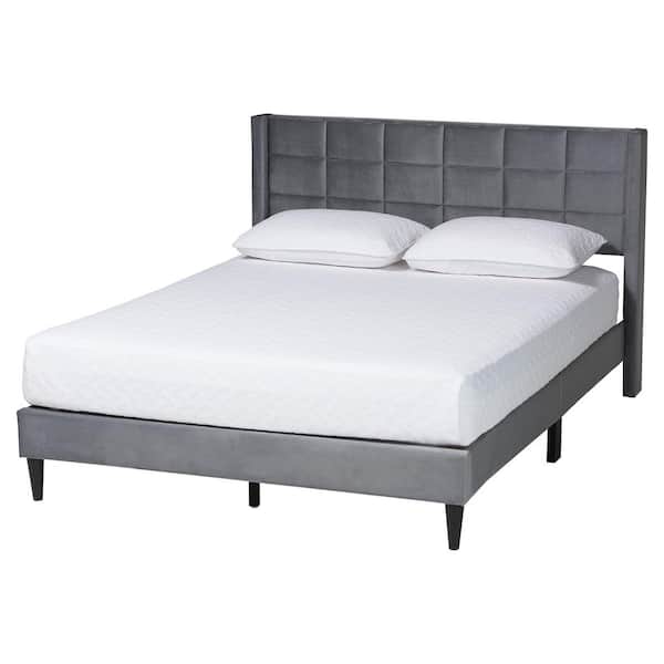 Payne Gray Velvet and Wood Frame Queen Platform Bed
