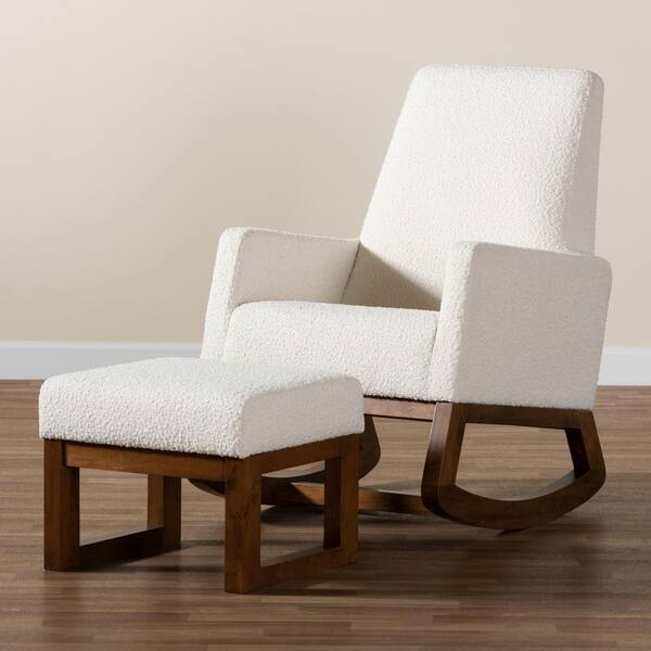 Yashiya Off-White and Walnut Brown Rocking Chair and Ottoman Set
