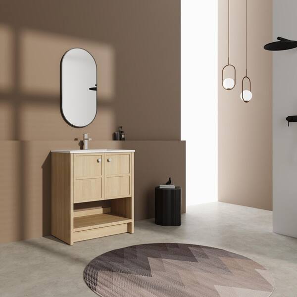 Bayhill 30 in. W x 18.13 in. D Single Sink Freestanding Original Oak Bath Vanity with White Ceramic Top Unassembled
