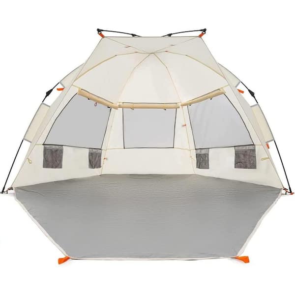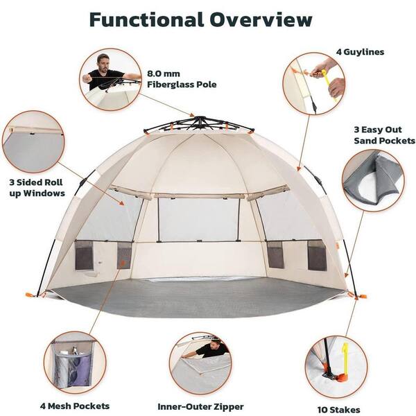 Beach Tent Sun Shelter for 2-4 Person - Extended Zippered Porch Beige