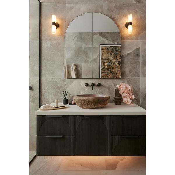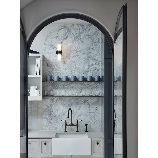 Luella 5 in. 2-Light Black Wall Sconce with Spanish Alabaster Shades