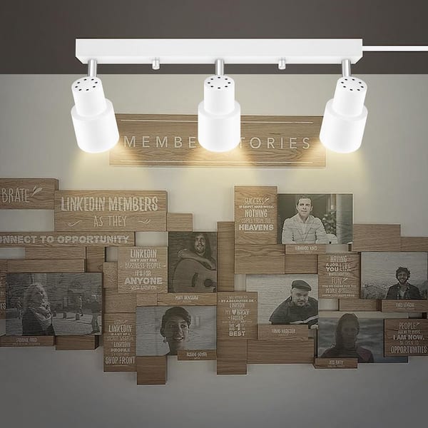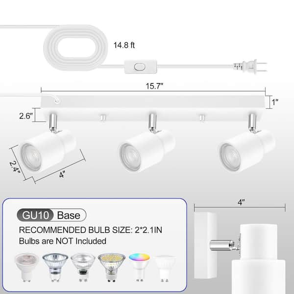White Finish Plug-In Track Lighting Fixture with 3 Adjustable LED Track Heads for Kitchen and Ceiling, Bulb Not Included
