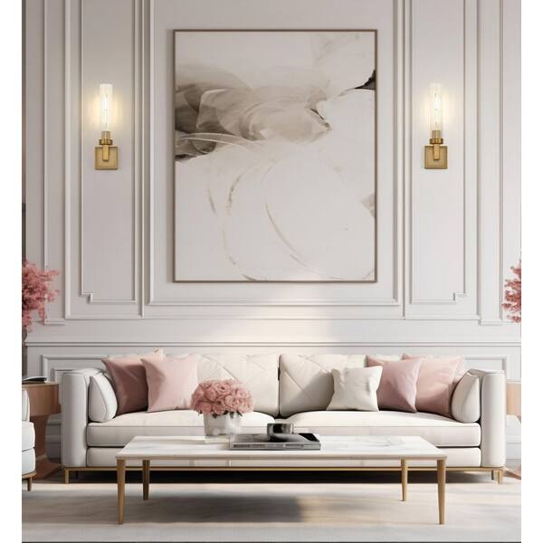 Beau 16.75 in. Rubbed Brass 1 Light Wall Sconce with Clear Ribbed Glass Shade
