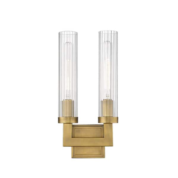 Beau 8.25 in. 2-Light Rubbed Brass Wall Sconce with Clear Glass Shade
